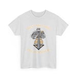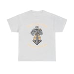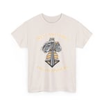 A relaxed, durable tee that pairs vintage illustration with warm, heritage colors. The design centers on a windswept, cloak-clad figure above a stylized tartan banner — an encounter between rugged tradition and everyday comfort. The medium-weight cotton lies flat for crisp printing, letting the muted gold and graphite tones hold their character wash after wash. Wear it on damp, windy walks, at low-key gatherings, or when you want clothing that feels rooted and quietly expressive. The classic crew neck and roomy cut let the design breathe and the wearer move freely, while the tear-away label keeps the back of the neck comfortable. This tee settles into your rotation and keeps telling the same story each time you pull it on.